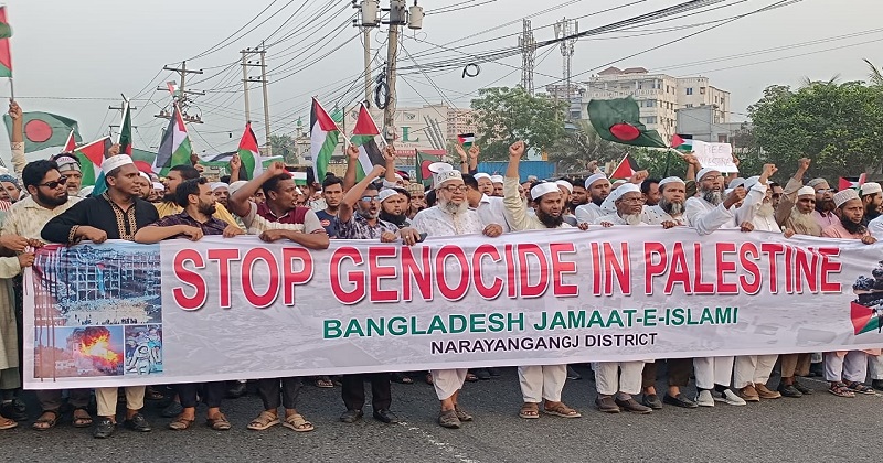 এ সময় বিভিন্ন উপাজেলা থেকে আগত বাংলাদেশ জামায়াতে ইসলামী নারায়ণগঞ্জ জেলার কয়েক হাজার নেতাকর্মী বিক্ষোভে অংশগ্রহণ করে ফিলিস্তিনের নির্যাতিত অসহায় মজলুম মানুষের জন্য দোয়া ও মোনাজাত করেন।