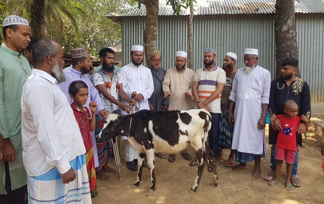 স্থানীয় সূত্রে জানা যায়, ছয় মাস আগে মাছ ধরতে গিয়ে টমটম দুর্ঘটনায় গুরুতর আহত হন পাঁচুয়া গ্রামের কিরন মিয়া। একটি পা মারাত্মকভাবে ক্ষতিগ্রস্ত হওয়ায় এখন তিনি ক্রাচে ভর দিয়ে চলাফেরা করেন। জীবিকার জন্য নির্ভর করতে হয় অন্যের সাহায্যের ওপর। পরিবারের তিন সন্তানসহ জীবনযাপন কঠিন হয়ে পড়লে তিনি জামায়াত নেতা রফিকুল ইসলাম বাবলুর সঙ্গে যোগাযোগ করেন। বাবলুর উদ্যোগে এবং স্থানীয় জামায়াত কর্মীদের সহায়তায় তাকে একটি অস্ট্রেলিয়ান ফ্রিজিয়ান জাতের বকনা গাভী প্রদান করা হয়।