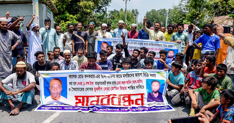 গাইবান্ধায় মসজিদের জমি কেনার নামে ১১ লাখ ৫ হাজার ৫০০ টাকা আত্মসাতের অভিযোগে দুই রাজনৈতিক নেতার বিরুদ্ধে মানববন্ধন ও সড়ক অবরোধ কর্মসূচি পালন করেছেন বিক্ষুব্ধ এলাকাবাসী ও মসজিদের মুসল্লিরা।