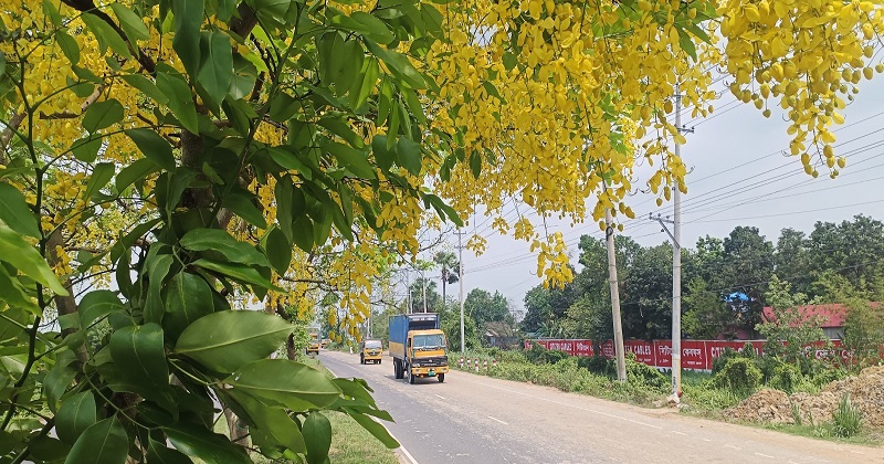 প্রকৃতিতে ফিরেছে গ্রীষ্মকাল। বছর শুরুর এই ঋতু মৌসুমি নানা ফলের পাশাপাশি পুষ্পপল্লবেও জানান দিচ্ছে নিজের উপস্থিতি। বাংলার প্রকৃতিতে সোনালু যেভাবে শোভা ছড়িয়ে চলেছে, তেমনি দেশের ব্যস্ততম ঢাকা-চট্টগ্রাম মহাসড়কেও ছড়াচ্ছে মুগ্ধতা। সোনালুর সোনার আভায় সেজেছে ঢাকা-চট্টগ্রাম মহাসড়কের কুমিল্লা অংশ। রাঙাচ্ছে মানুষের মন। এ ছাড়া দিনে মহাসড়কের সৌন্দর্যবর্ধন এবং রাতের বেলায় বিপরীত দিকের গাড়ির হেডলাইটের আলো যেন চালকের চোখে না পড়ে এ জন্য বিভাজকে বিভিন্ন ধরনের গাছ দুর্ঘটনা থেকে রক্ষা করছে।
