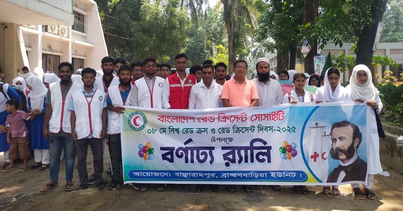 ৮ মে বিশ্ব রেড ক্রস ও রেড ক্রিসেন্ট দিবস ২০২৫ উপলক্ষে বাংলাদেশ রেড ক্রিসেন্ট সোসাইটির পক্ষে বাঞ্ছারামপুর যুব রেড ক্রিসেন্ট টিম আয়োজনে বর্ণাঢ্য র্যালি ও আলোচনা সভা অনুষ্ঠিত হয়েছে। ‘আশা জাগানিয়া মানবতা’ স্লোগানে আয়োজিত এ কর্মসূচিতে অংশ নেয় শতাধিক স্বেচ্ছাসেবক ও বিভিন্ন শিক্ষা প্রতিষ্ঠানের শিক্ষক-শিক্ষার্থীরা।