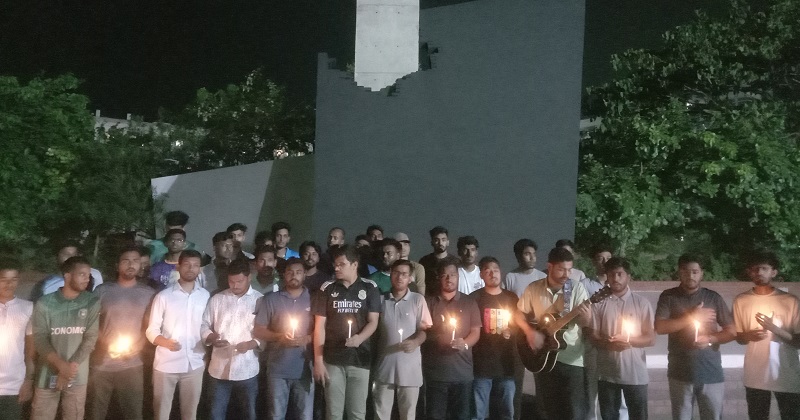 মঙ্গলবার (১৩ মে) সন্ধ্যা সাড়ে ৭টার দিকে বিশ্ববিদ্যালয়ের শহিদ মিনারের পাদদেশে এ পরিবেশনায় অংশ নেন তারা।
