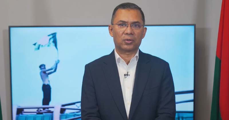 দেশবাসীর উদ্দেশে তারেক রহমান বলেন, হাজারো শহিদের রক্তস্নাত রাজপথে ফ্যাসিবাদবিরোধী অভূতপূর্ব জাতীয় ঐক্য গড়ে উঠেছে। বাংলাদেশে আর কখনোই ফ্যাসিবাদ কায়েম হবে না, কাউকে গণতন্ত্র হত্যা করার সুযোগ দেওয়া হবে না, বাংলাদেশকে আর কখনোই তাঁবেদার রাষ্ট্রে পরিণত করতে দেওয়া হবে না। আমি মনে করি, এসব প্রশ্নে জাতীয় ঐক্য বহাল আছে, থাকবে।