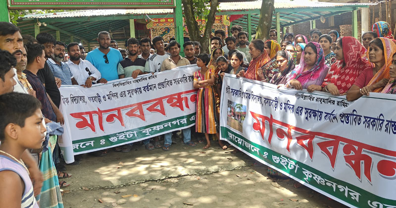 মানববন্ধনে বক্তারা সরকারের কাছে দাবি জানান- প্রস্তাবিত রাস্তা ও এক্সপ্রেসওয়ের রুট অবিলম্বে পরিবর্তন করতে হবে এবং মন্দির, বিদ্যালয় ও স্থানীয়দের ভিটেমাটি রক্ষা করতে হবে।