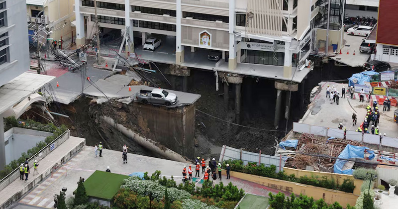 থাইল্যান্ডের রাজধানী ব্যাংককে সামসেন রোডের একটি অংশ দেবে গেছে। এতে করে ভাজিরা হাসপাতালের সামনে ১৬০ ফুট গভীর একটি গর্তের সৃষ্টি হয়েছে। তবে এ ঘটনায় কেউ হতাহত হননি।