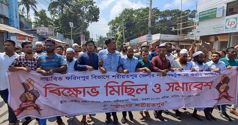 প্রস্তাবিত ফরিদপুর বিভাগে শরীয়তপুর জেলাকে অন্তর্ভুক্ত করার প্রতিবাদে সড়ক অবরোধ করে বিক্ষোভ করেছে শরীয়তপুরের শত শত ছাত্র জনতা।