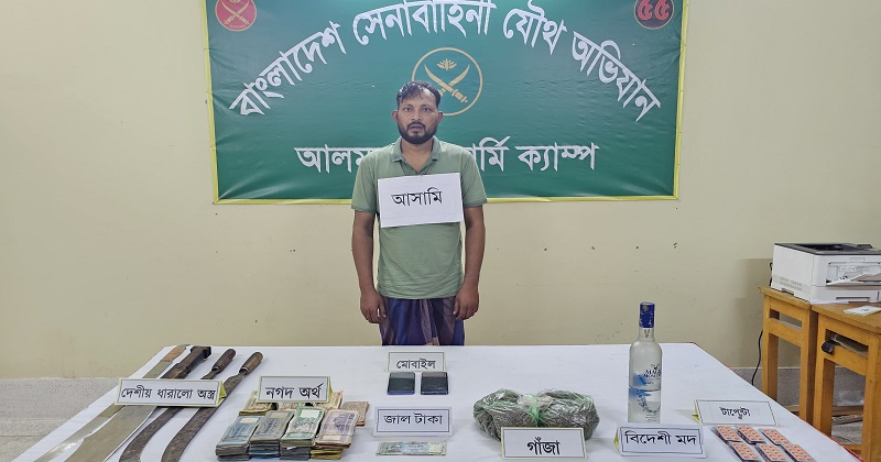 চুয়াডাঙ্গার আলমডাঙ্গা আর্মি ক্যাম্পের সেনাসদস্যরা ও পুলিশ যৌথ অভিযান চালিয়ে ৪ টি দেশী ধারালো অস্ত্র, গাঁজা, ট্যাপেন্টাডল ট্যাবলেট, ১ বোতল বিদেশি মদ, ৫০০ টাকার জাল নোট ১টি, নগদ ২ লাখ ৪৭ হাজার ৮৩০ টাকা, এবং ২টি অ্যান্ড্রয়েড ফোন উদ্ধার করা করেছে।