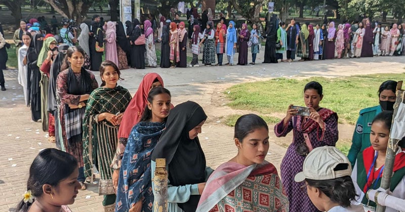বৃহস্পতিবার (১৬ অক্টোবর) সকাল ৯ টায় ১৭টি ভোট কেন্দ্রে শুরু হয় ভোটগ্রহণ। সকাল সোয়া ৯ টায় ড্রীনস কমপ্লেক্সে মুন্নুজান হল এবং ড. মুহম্মদ শহীদুল্লাহ্ ভবনে শহীদ জিয়াউর রহমান হলের সামনে দীর্ঘ লাইনে দাঁড়িয়ে ভোটারদের ভোট দিতে দেখা যায়।