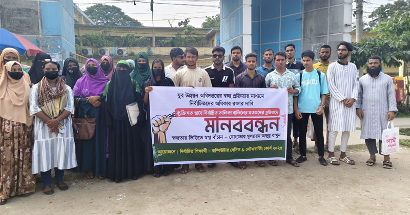 মানববন্ধনে অংশ নেওয়া শিক্ষার্থী মো. জাহিদুল করিম, মেহদি হাসান সায়মন, বায়েজিদ আলম ও প্রশিক্ষণার্থী মাইশা খানম, সুইটি আক্তার বক্তব্য দেন।