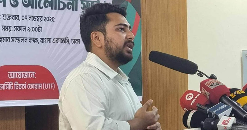 শুক্রবার (৭ নভেম্বর) দুপুরে বাংলা একাডেমির কবি শামসুল হক সম্মেলন কক্ষে ইউনিভার্সিটি টিচার্স ফোরাম (ইউটিএফ) আত্মপ্রকাশ ও আলোচনা সভায় প্রধান অতিথির বক্তব্যে তিনি এসব মন্তব্য করেন।