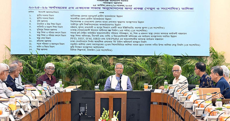 সোমবার (১০ নভেম্বর) রাজধানীর শেরেবাংলা নগরের এনইসি সম্মেলন কক্ষে একনেক সভা শেষে বিজ্ঞপ্তিতে এ তথ্য জানানো হয়। বৈঠকে সভাপতিত্ব করেন প্রধান উপদেষ্টা এবং একনেক চেয়ারপারসন ড. মুহাম্মদ ইউনূস।