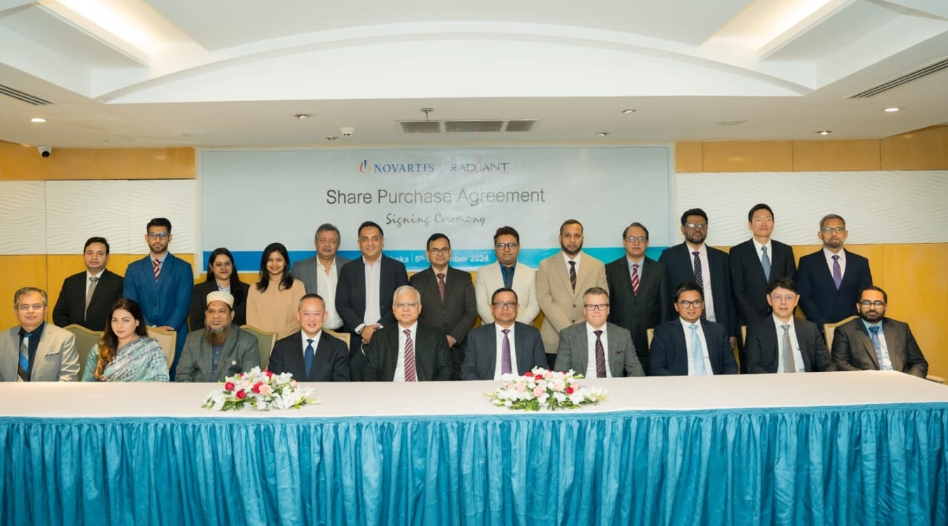 বৃহস্পতিবার (৫ ডিসেম্বর) রাজধানীর একটি পাঁচ তারকা হোটেলে নোভার্টিস সুইজারল্যান্ড ও রেডিয়েন্ট ফার্মাসিউটিক্যালসের মধ্যে শেয়ার হস্তান্তর চুক্তি স্বাক্ষর হয়। চুক্তি অনুযায়ী নোভার্টিস বাংলাদেশ লিমিটেডের ৬০ শতাংশ শেয়ার অধিগ্রহণ করেছে স্থানীয় ওষুধ কোম্পানি রেডিয়েন্ট ফার্মাসিউটিক্যালস লিমিটেড। বাকী ৪০ শতাংশ শেয়ার যথারীতি বাংলাদেশ সরকারের হাতেই থাকবে। সরকারের পক্ষে প্রতিষ্ঠানটিতে প্রতিনিধিত্ব করছে বাংলাদেশ কেমিকেল ইন্ডাস্ট্রিজ করপোরেশন (বিসিআইসি)।