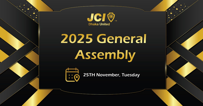 তরুণ নেতৃত্বের উন্নয়নমূলক আন্তর্জাতিক সংগঠন জুনিয়র চেম্বার ইন্টারন্যাশনাল (জেসিআই), বাংলাদেশের ঢাকা ইউনাইটেড চ্যাপ্টারের সাধারণ অধিবেশন আগামী ২৫ নভেম্বর (মঙ্গলবার) অনুষ্ঠিত হবে। রাজধানীর গুলশান ক্লাব লিমিটেডের ল্যাম্বডা হলে সন্ধ্যা ৭টায় এই অধিবেশন শুরু হবে।