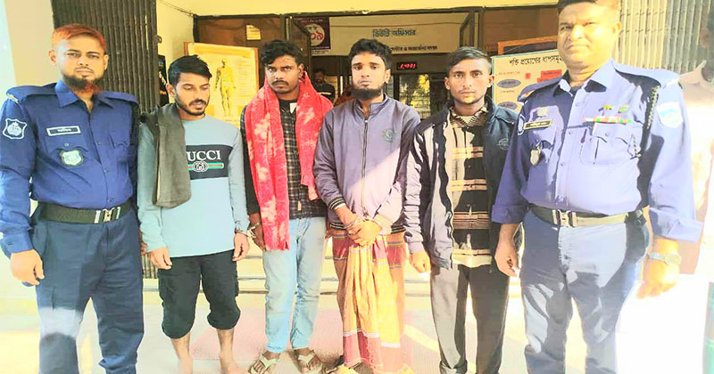 আসামিদের নাম, (মূল হোতা) বাকিরুল ইসলাম রাকিব (৩২), আব্দুর রহমান (২৭), আলাউদ্দিন (২৫) ও রন্জিত হোসেন (২৩) আটক করা হয়েছে।