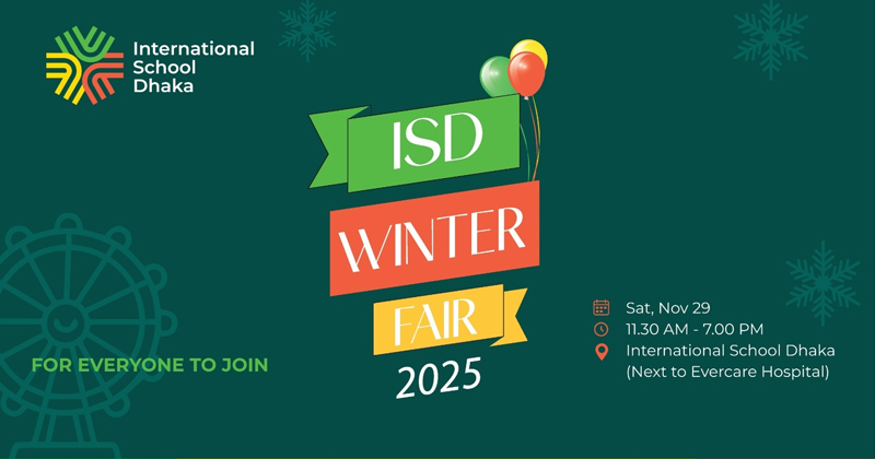 শীতের আবহকে সামনে রেখে শীতকালীন মেলার আয়োজন করেছে ইন্টারন্যাশনাল স্কুল ঢাকা (আইএসডি)। আইএসডি’র বার্ষিক এ আয়োজন, ‘উইন্টার ফেয়ার,’ রাজধানীর বসুন্ধরায় স্কুলটির ক্যাম্পাসে আগামী শনিবার (২৯ নভেম্বর) বেলা সাড়ে ১১টা থেকে সন্ধ্যা ৭টা পর্যন্ত অনুষ্ঠিত হবে। উৎসবের আমেজ ও ঐক্যবদ্ধ থাকার চেতনা নিয়ে মেলায় থাকবে বিনোদনমূলক বিভিন্ন কার্যক্রম।