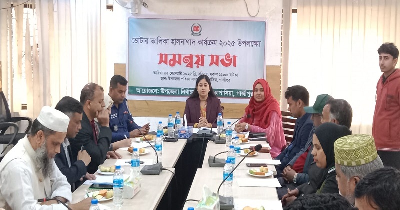 গাজীপুরের কাপাসিয়ায় ভোটার তালিকা হালনাগাদ ২০২৫ উপলক্ষে সমন্বয় সভা অনুষ্ঠিত হয়েছে।