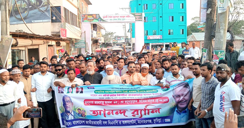 মঙ্গলবার (১৭ ফেব্রুয়ারি) বিকাল ৪টায় লাকসাম মনোহরগঞ্জ আসনের সাবেক সংসদ সদস্য কর্নেল(অব.) এম আনোয়ারুল আজিমের নির্দেশে মনোহরগঞ্জ উপজেলা বিএনপির উদ্যোগে আনন্দ মিছিল ও সমাবেশ অনুষ্ঠিত হয়েছে।