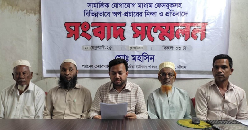 সামাজিক যোগাযোগ মাধ্যম ফেসবুকসহ বিভিন্ন মাধ্যমে মিথ্যা, ভিত্তিহীন ও বানোয়াট অপপ্রচারের নিন্দা ও প্রতিবাদ জানিয়ে সংবাদ সম্মেলন করেছেন চট্টগ্রামের সাতকানিয়া উপজেলার ১০নং কেঁওচিয়া ইউনিয়নের প্যানেল চেয়ারম্যান মো. মহসিন।
