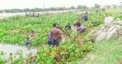 কেশবপুরে পানি নিষ্কাশনে স্বেচ্ছাশ্রমে শ্যাওলা অপসারণ শুরু