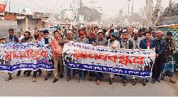 ঘোড়াশালে বাজার উচ্ছেদ অভিযান বন্ধের দাবিতে ব্যবসায়ীদের মানববন্ধন