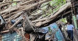 ফুলবাড়ীতে কালবৈশাখীতে বটগাছ ভেঙে দোকানঘর বিধ্বস্ত