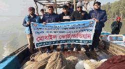 বাঞ্ছারামপুরে জাটকা সংরক্ষণ অভিযানে মাছ ও কারেন্ট জাল জব্দ