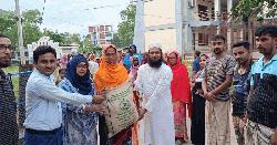 পোরশায় পানিবন্দিদের মাঝে ত্রাণসামগ্রী বিতরণ