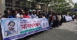 শরীয়তপুরে শিশু তায়েবা হত্যার বিচার দাবিতে বিক্ষোভ ও মানববন্ধন