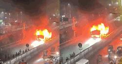 এবার রাজধানীর ধোলাইপাড়ে বাসে আগুন