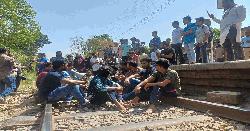 ঢাবিকেন্দ্রিক আধিপত্যের অবসানের দাবিতে রাবি শিক্ষার্থীদের রেল অবরোধ
