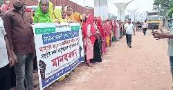আশুলিয়ায় বন্ধ কারখানা খুলে দেওয়ার দাবিতে শ্রমিকদের মনববন্ধন