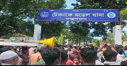 টেকনাফ থানার সামনে জনতার বিক্ষোভ