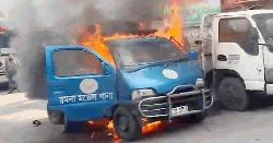 রমনা থানার সামনে পুলিশের গাড়িতে আগুন