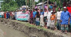 দুধকুমার নদের ভাঙন রোধে স্থায়ী বাঁধ নির্মাণের দাবিতে মানববন্ধন