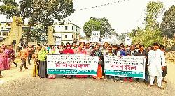 বীরগঞ্জে ইউএনওকে প্রত্যাহারের দাবিতে মানববন্ধন