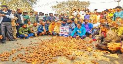 হিমাগারের ভাড়া বাড়ানোর প্রতিবাদে মহাসড়কে আলু ফেলে কৃষকদের বিক্ষোভ