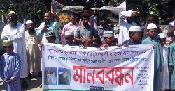 বোদায় মাদ্রাসা শিক্ষকের ওপর হামলার প্রতিবাদে মানববন্ধন