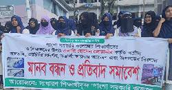 রাজবাড়ীতে সহযোগী অধ্যাপক কর্তৃক প্রভাষক হেনস্তার প্রতিবাদে শিক্ষার্থীদের মানববন্ধন
